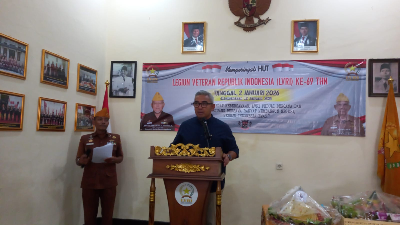Wali Kota Bandung Kang Farhan menghadiri Hari Ulang Tahun Veteran yang ke – 69 di markas Veteran Dewan Pimpinan Cabang Kota Bandung Jalan Aceh Nomor 4 Kelurahan Babakan Ciamis, Kecamatan Sumur Bandung, Kota Bandung – Jawa Barat, Sen8n, 12 Januari 2026.